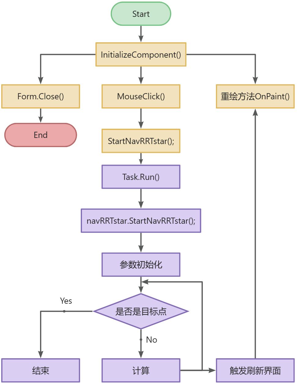 根据上面对RRT*算法的分析,进行C#程序设计,程序流程图如下;