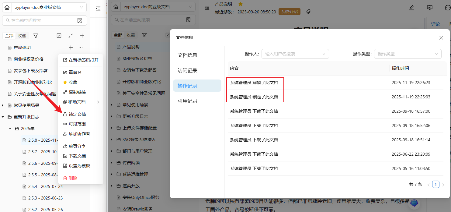 文档支持锁定与解锁,实现类似文档的归档操作,保障文档内容的安全性。