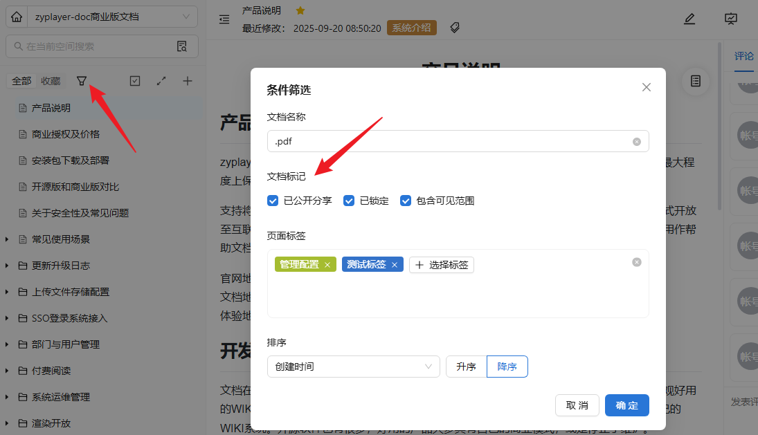 - 文档列表新增分享状态、锁定状态及可见范围状态筛选功能