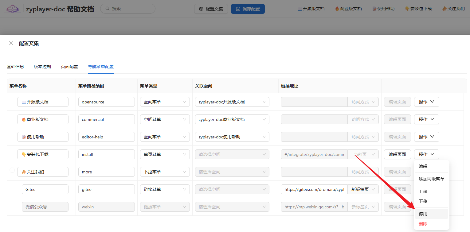 文集菜单新增停用与启用功能,便于管理员灵活管理文集菜单的可用状态。