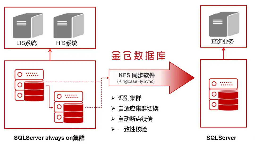关键时刻,金仓数据库接到了求助电话。技术团队二话不说,立即赶往现场。他们带来的"秘密武器"是自主研发的Kingbase FlySync(KFS)异构数据库实时同步软件。