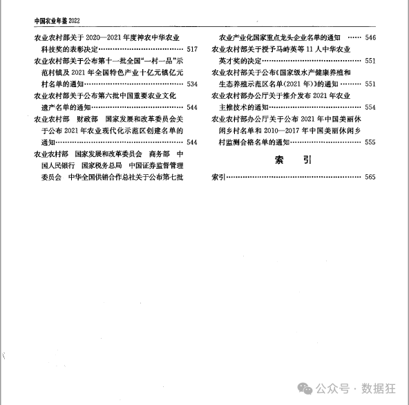 二、本年鉴撰稿人主要是各有关涉农主管部门和相关事业单位的工作人员,统计资料由国家统计局、农业农村部等有关部门提供。