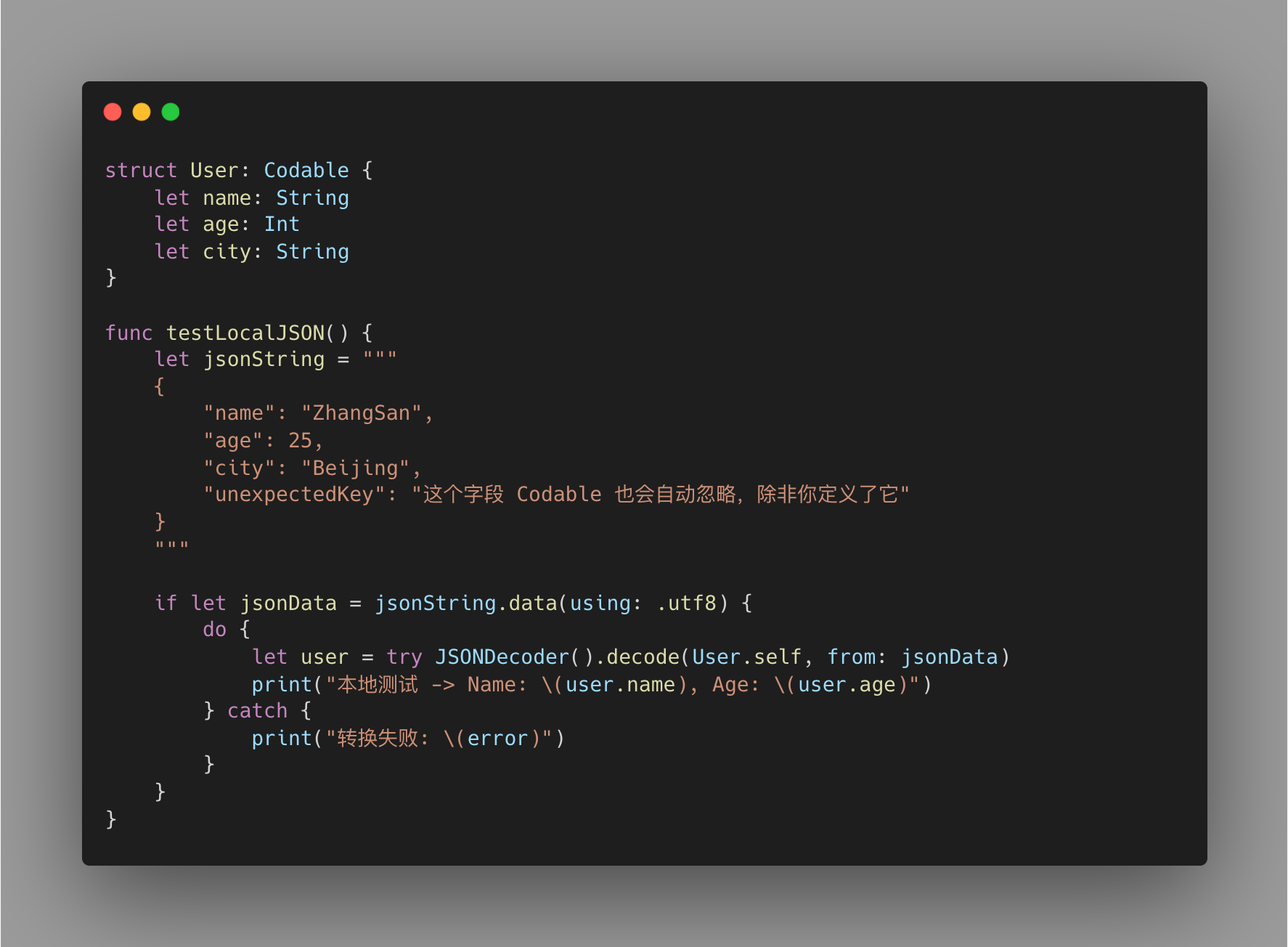 在纯Swift开发中,我们网络请求数据转换通常会使用Codable,是目前最标准、最推荐、也是最方便的方法。