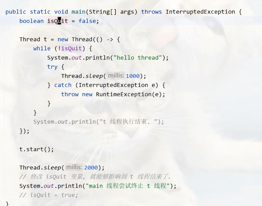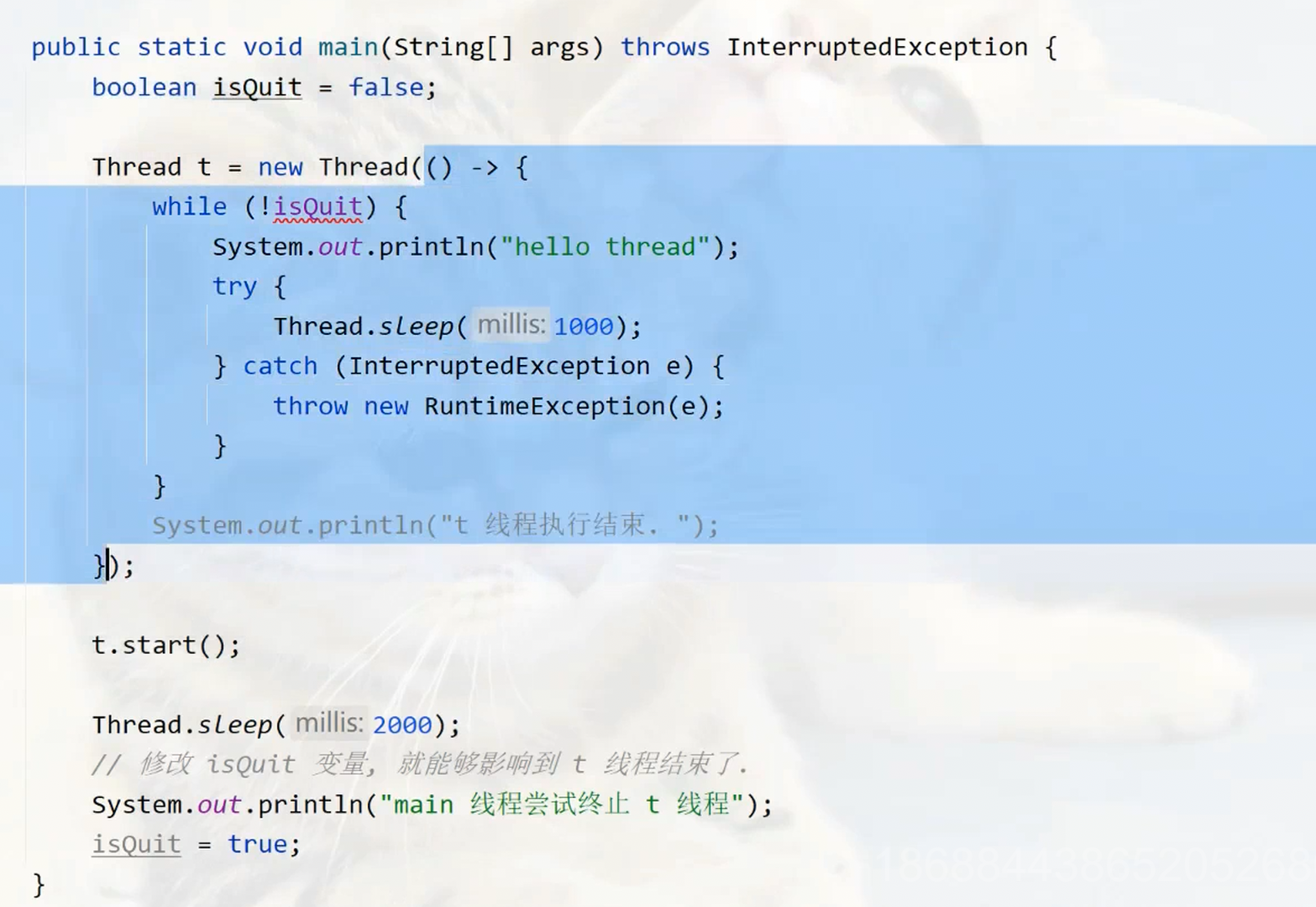 Thread t1 = new Thread(()->{