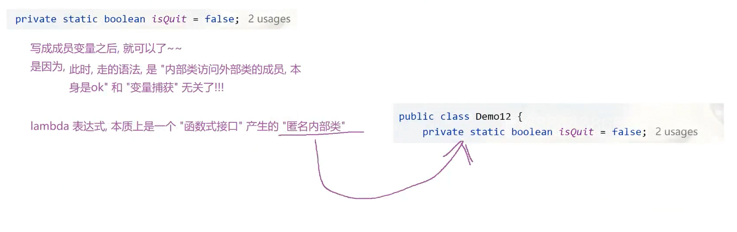 Lambda里面的代码,不能访问t的,因为Lambda的代码先执行