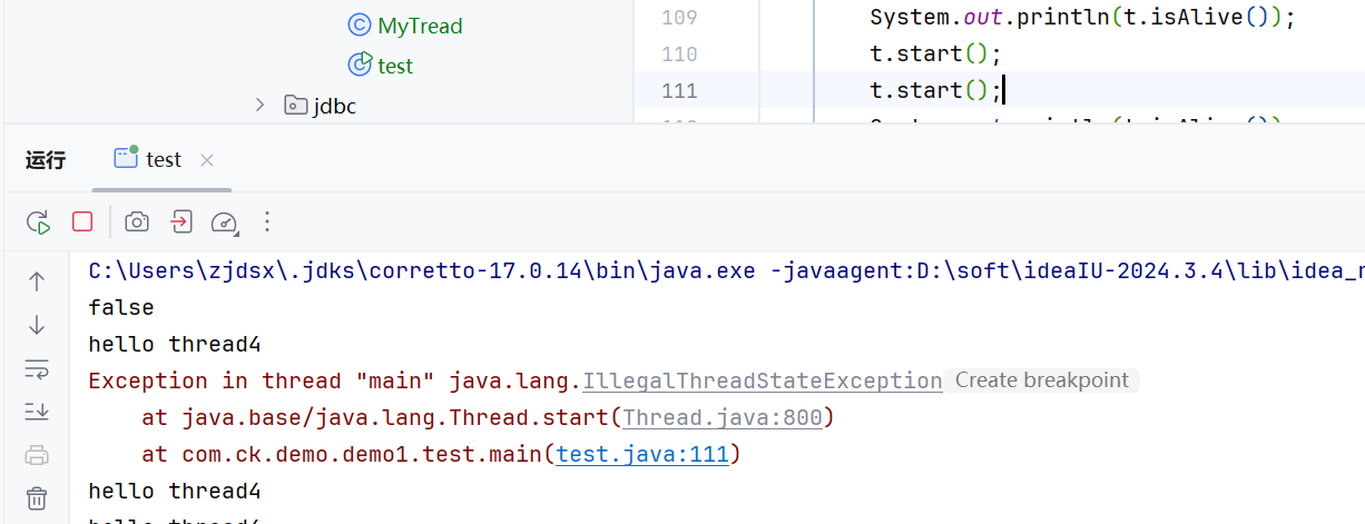 IllegalThreadStateException意思就是状态不合法