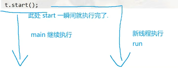 调用start,就会进入进程内部,创建一个新的线程,新的线程就会执行run方法