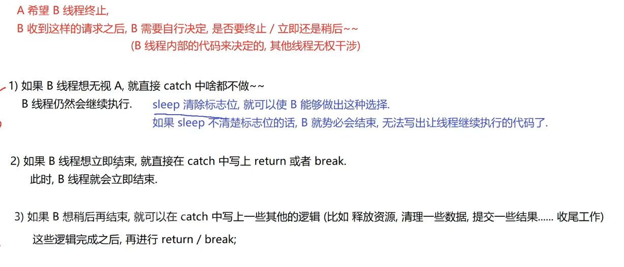 这个是因为sleep等阻塞函数被唤醒之后,就会清空interrupted标志位