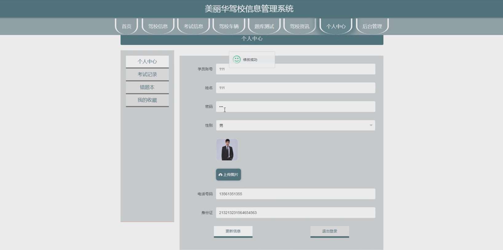 系统的用户界面设计遵循简洁、直观的原则,采用符合大众使用习惯的操作逻辑,如菜单导航、按钮布局等。针对管理员、教练、学员三种不同角色,系统提供了个性化的操作界面与功能权限,用户只需经过简单培训即可熟练操作。例如,学员可通过清晰的指引完成考试预约与教练评价,教练可快速查询带教学员信息与工资明细,操作难度较低,具有良好的操作可行性。