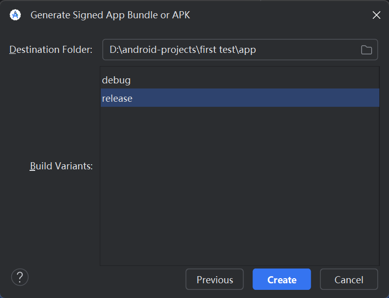 最后路径。D:\android-projects\first test\app\build\intermediates\apk\debug
