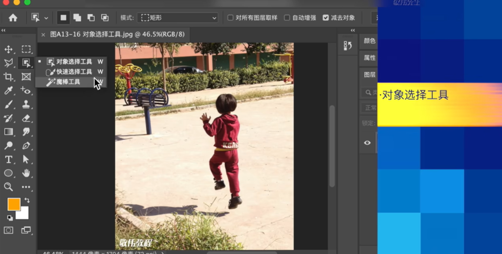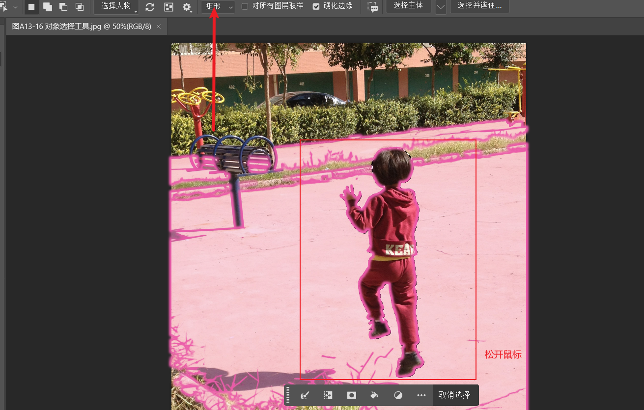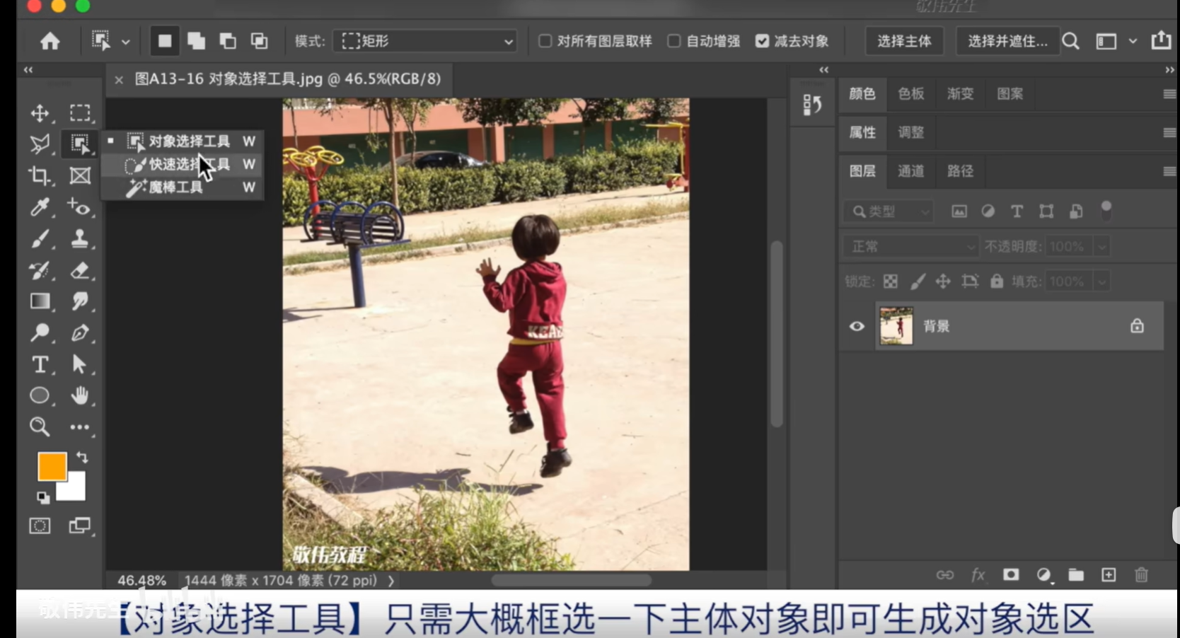 对象选择工具只需要大概选择一下主体对象,便可以选择选区。