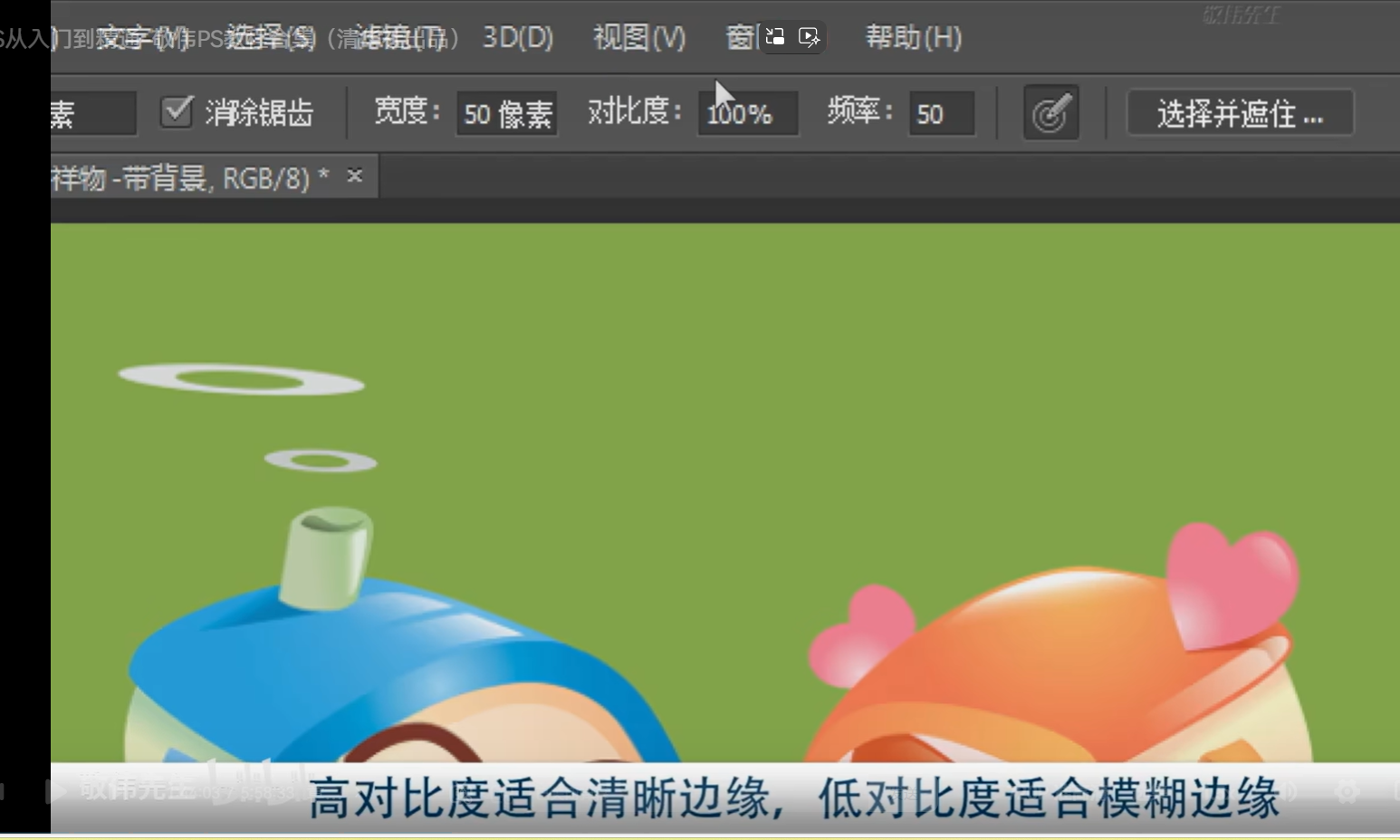 高对比度适合清晰边缘 ,低对比适合模糊边缘。