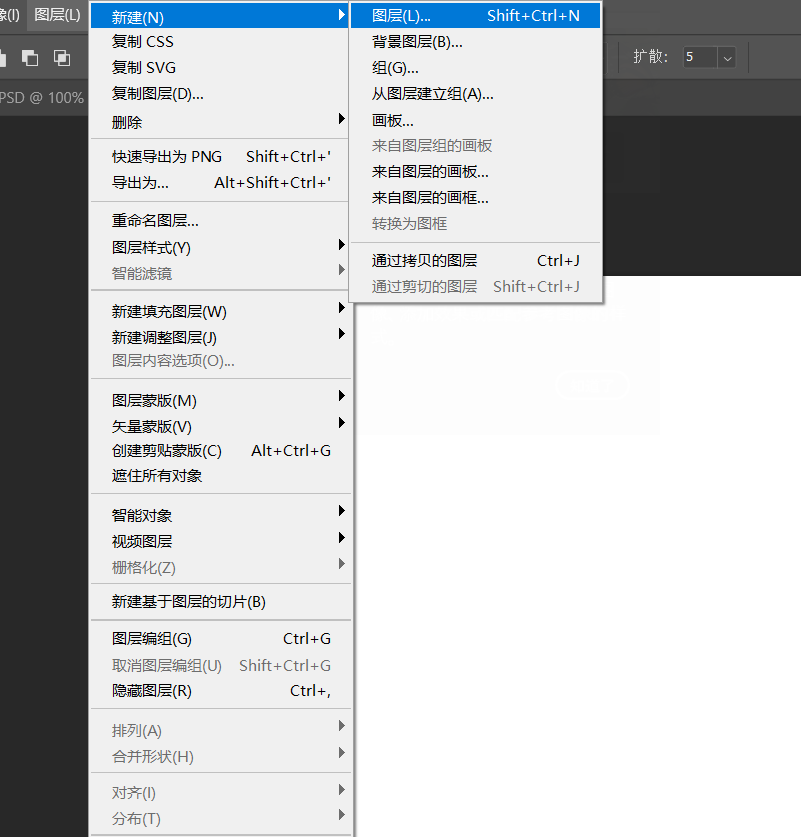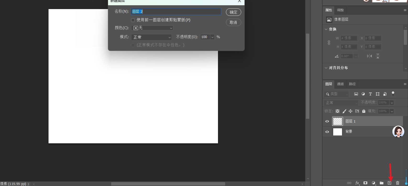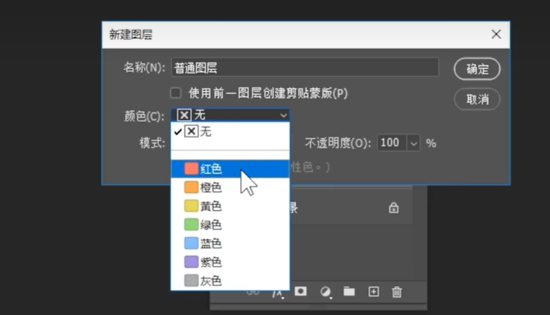 如果按住 alt 按键点击创建新图层选项则会出现 创建图层的选项