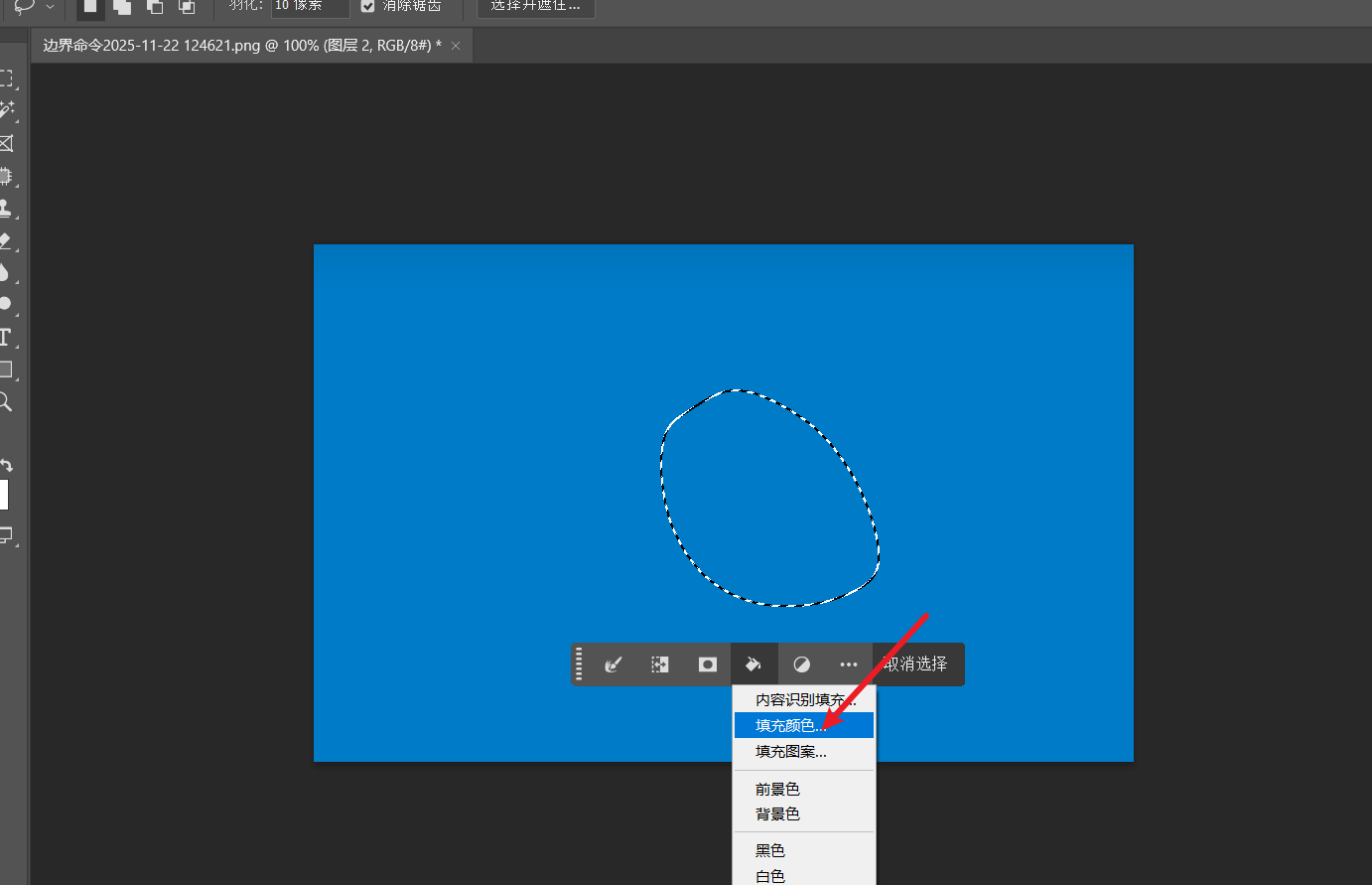 多边形套索画一个选区 选择----修改---边界 宽度设置为20