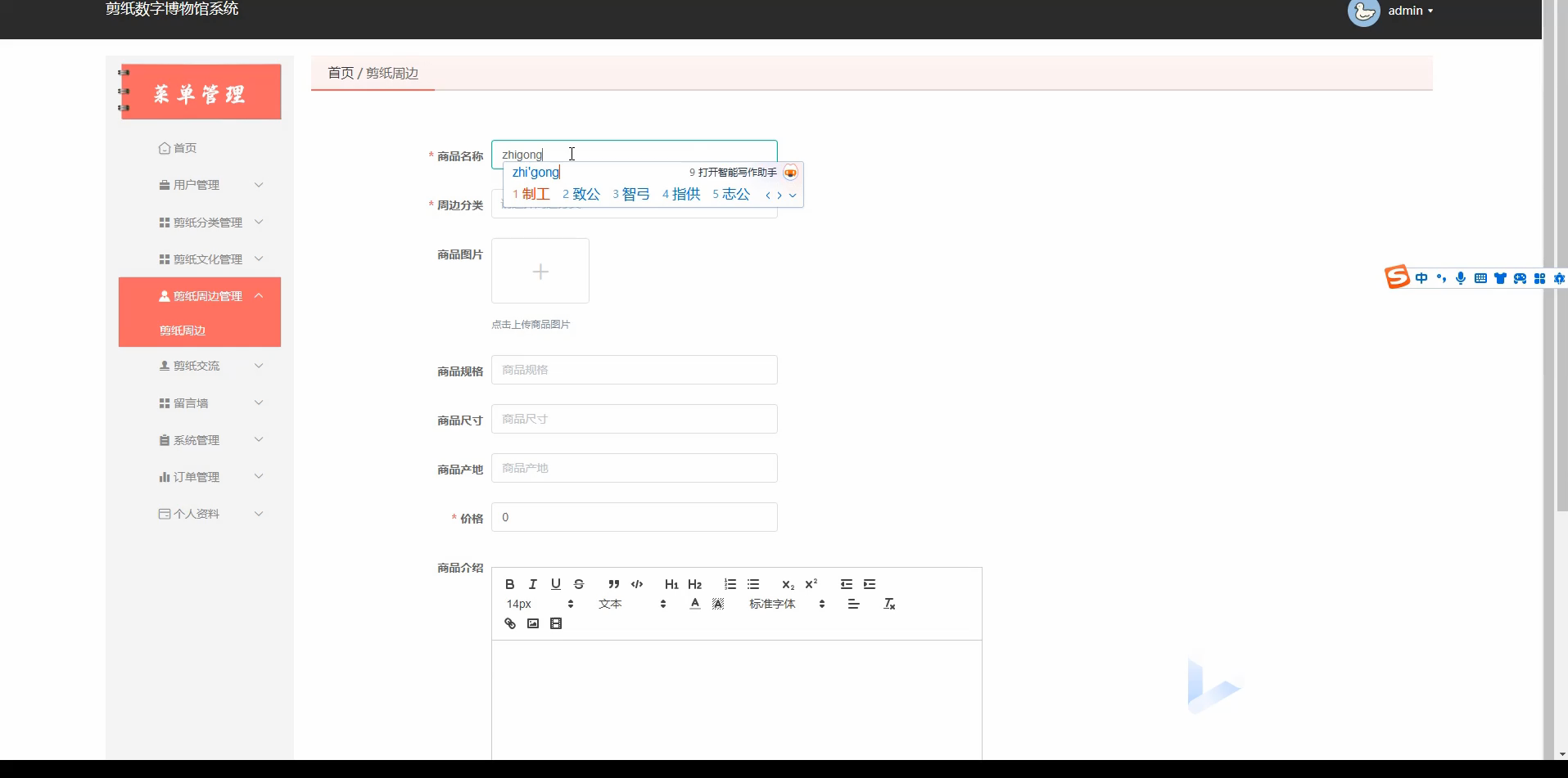 - 文化产业发展意义:与剪纸周边产品的开发相结合,推动剪纸文化产业的创新发展,为地方经济发展做出贡献。例如,系统可以展示和推广剪纸工具、剪纸文创产品等,拓展剪纸艺术的商业价值。