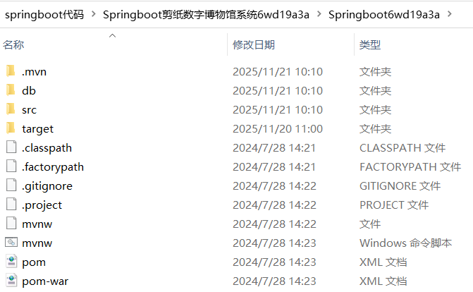 1\] 王宏钧. 中国博物馆学基础(修订本)\[M\]. 上海:上海古籍出版社,2001. \[2\] 翟永超. Spring Boot实战\[M\]. 北京:电子工业出版社,2016. \[3\] 乔斯科. Three.js开发指南\[M\]. 北京:电子工业出版社,2022. \[4\] 吕曦. 非物质文化遗产数字化研究综述\[J\]. 遗产与保护研究,2019, 4(1): 80-85. \[5\] 刘钊. 基于Web的虚拟博物馆设计与实现技术研究\[D\]. 北京工业大学,2020. \[6\] 魏佳. 数字人文视域下非遗剪纸资源的知识组织研究\[J\]. 图书馆论坛,2022, 41(5): 112-120. \[7\] Lombardo V, Damiano R. Storytelling on mobile devices for cultural heritage\[J\]. New Review of Hypermedia and Multimedia, 2012. ## ******系统技术栈说明****** ### ******(一)前端技术栈****** 前端采用 "Vue.js + Element UI" 组合,实现轻量化、高交互性的用户界面开发: 1. ****Vue.js**** :作为核心 JavaScript 框架,支持组件化开发与前后端分离架构,可简化界面渲染逻辑,提升开发效率;同时具备响应式特性,能适配不同设备屏幕,优化用户体验。 2. ****Element UI**** :基于 Vue.js 的开源 UI 组件库,提供按钮、表单、表格等丰富预设组件,无需从零开发基础界面元素,可快速搭建美观、统一的前端界面,降低界面设计难度。 ### ******(二)后端技术栈****** 后端以 Spring Boot 为核心,构建稳定、高效的服务端架构,核心能力包括: 1. ****核心容器**** :提供对象管理与依赖注入功能,自动维护组件间依赖关系,减少代码冗余,提升系统可维护性。 2. ****Web 支持**** :内置 Tomcat、Jetty 等嵌入式 Web 容器,无需额外部署服务器,可直接启动 Web 应用,简化部署流程。 3. ****数据访问**** :支持 MyBatis、JPA 等主流 ORM 框架,同时兼容多种数据库连接池,可快速实现数据库增删改查操作,简化数据层开发。 ### ******(三)开发工具****** 1. ****IntelliJ IDEA**** :功能全面的 Java 集成开发环境(IDE),对 Spring Boot 项目有原生支持,提供代码提示、调试、插件扩展等功能,可大幅提升后端开发效率。 2. ****Visual Studio Code**** :轻量级跨平台 IDE,支持 Vue.js 语法高亮、代码格式化与插件扩展,适合前端代码编写与调试,且占用资源少,启动速度快。 ## ******系统开发流程****** ### ******(一)项目初始化****** 1. 通过 IntelliJ IDEA 或 Eclipse 等 IDE,选择 Maven 模板创建 Spring Boot 项目,自动生成基础项目结构; 2. 在项目pom.xml文件中,引入spring-boot-starter-web(Web 开发支持)、spring-boot-starter-jdbc(数据库连接支持)等核心依赖,确保所需功能模块可正常调用。 ### ******(二)核心配置****** 1. ****启动类设置**** :在src/main/java目录下创建主启动类(通常命名为Application.java),添加@SpringBootApplication注解,启用 Spring Boot 自动配置功能;主启动类需包含main方法,作为项目入口。 2. ****配置文件编写**** :在src/main/resources目录下创建application.properties或application.yml文件,配置数据库连接信息(如 URL、用户名、密码)、服务器端口、缓存策略等核心参数。 ### ******(三)自动配置原理****** Spring Boot 通过 "条件注解" 机制实现自动配置:扫描项目类路径下的组件与依赖,根据配置文件参数或依赖包存在性,自动初始化符合条件的 Bean(如数据库连接池、Web 容器),无需手动编写配置代码,减少开发工作量。 ## ******使用者操作指南****** ### ******(一)环境搭建****** 1. 选择 Maven 或 Gradle 构建工具,创建新工程并引入 Spring Boot 相关依赖; 2. 确保本地安装 JDK 1.8 及以上版本、MySQL 5.7 及以上版本,配置环境变量(如JAVA_HOME),确保工具可正常调用。 ### ******(二)项目启动****** 1. 进入项目src/main/java目录,找到主启动类,运行其main方法; 2. 项目默认使用嵌入式 Web 容器(如 Tomcat)启动,启动成功后,可通过浏览器访问http://localhost:端口号(端口号在配置文件中定义),验证项目是否正常运行。 ## ******系统界面展示******