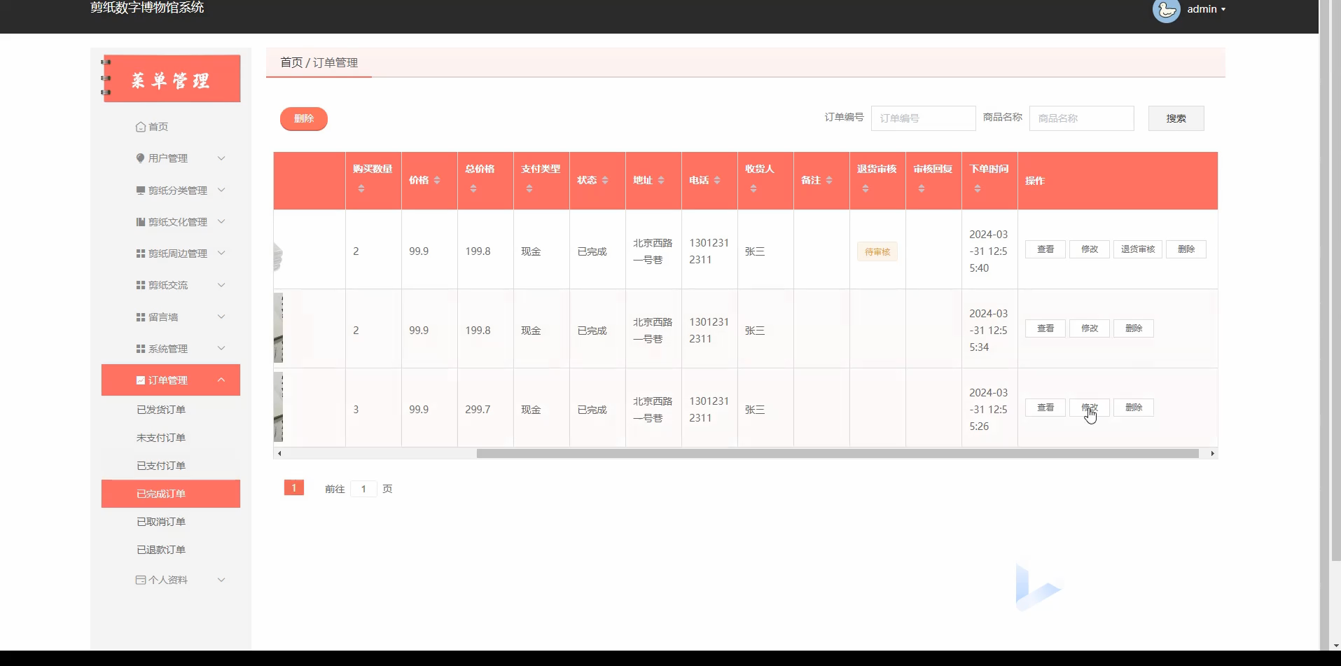 用户剪纸分类,剪纸文化,剪纸周边,剪纸交流论坛,留言墙,订单管理