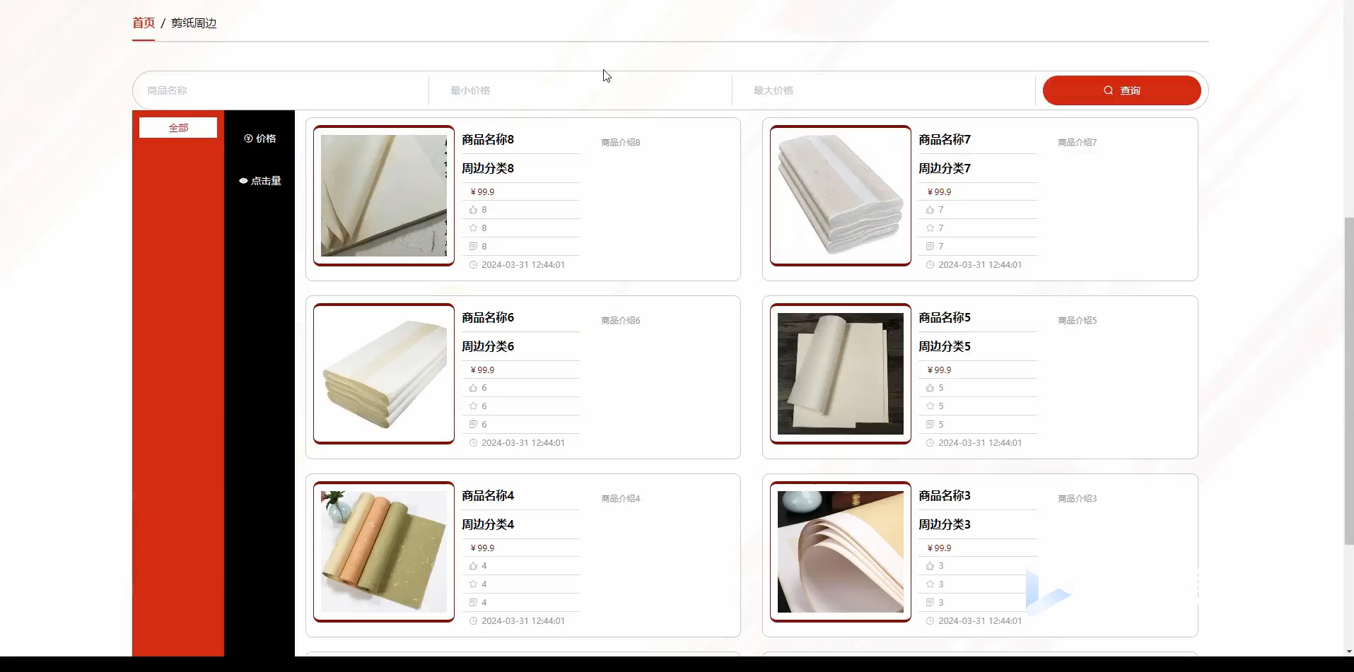 - 周边产品展示与推广模块:展示剪纸工具、剪纸文创产品等周边产品,提供购买链接或合作渠道。