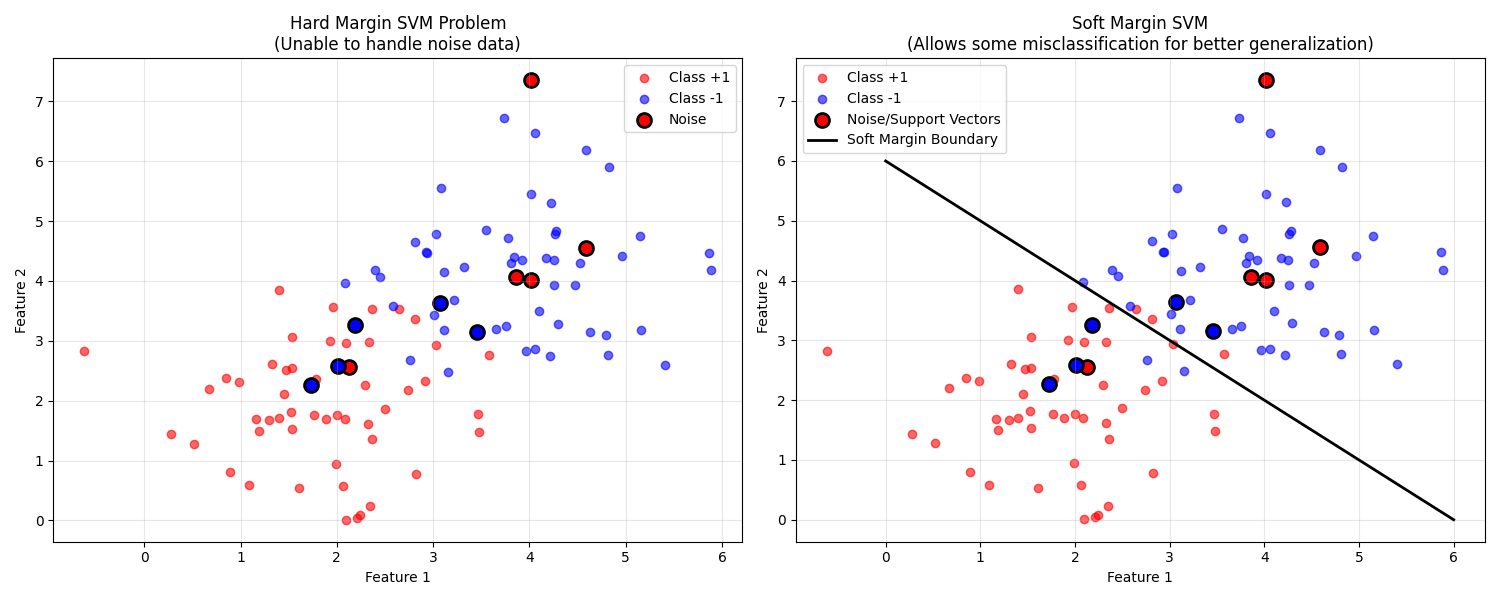 我们引入松弛变量ξ_i ≥ 0,允许一些样本违反间隔约束:
