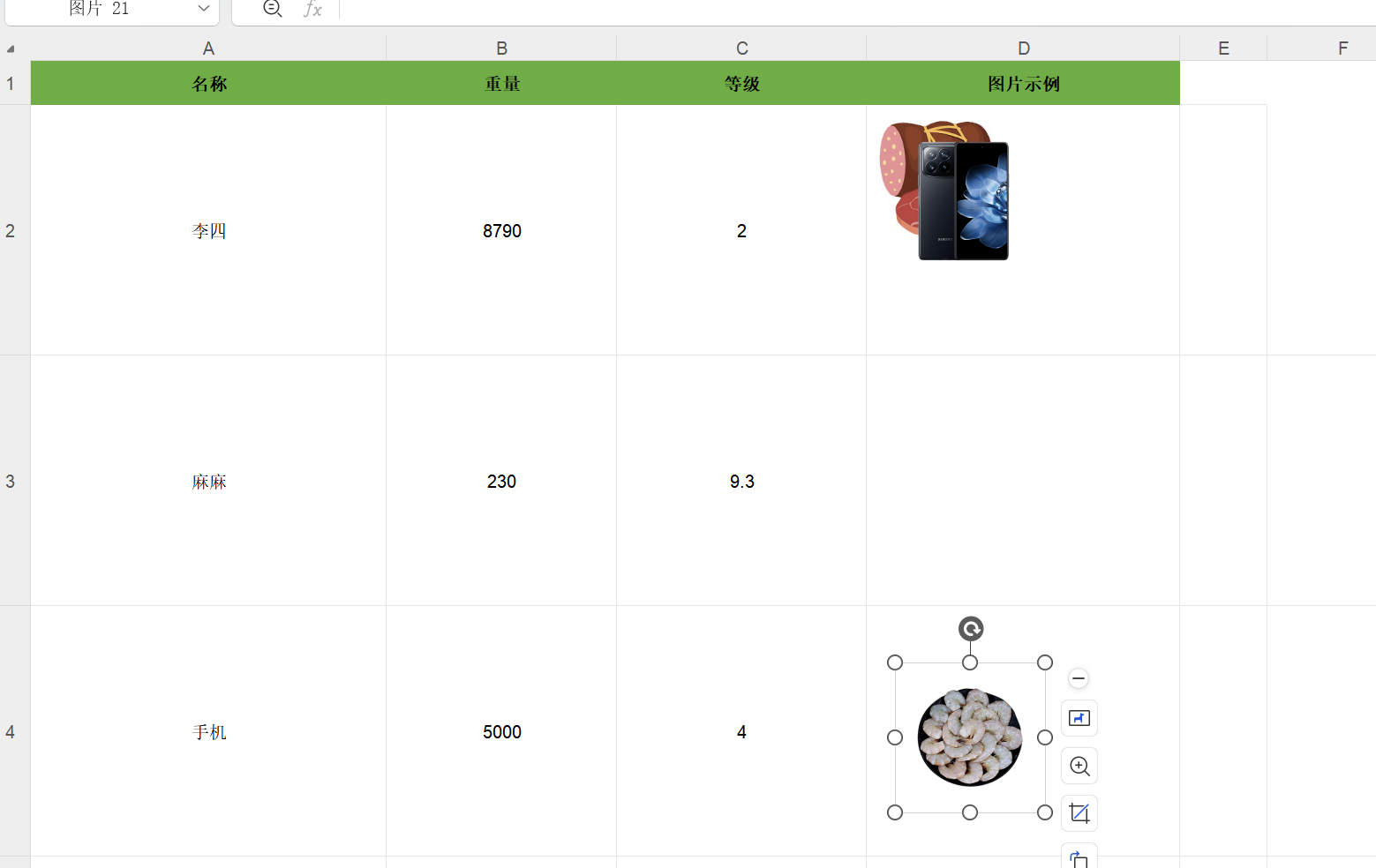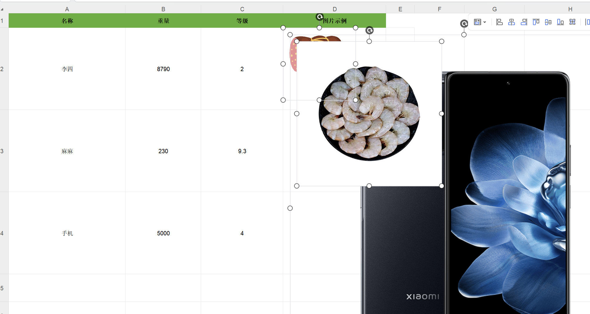 然后点击空白处,然后点击第一层的图片,将其放到末尾的单元格位置: