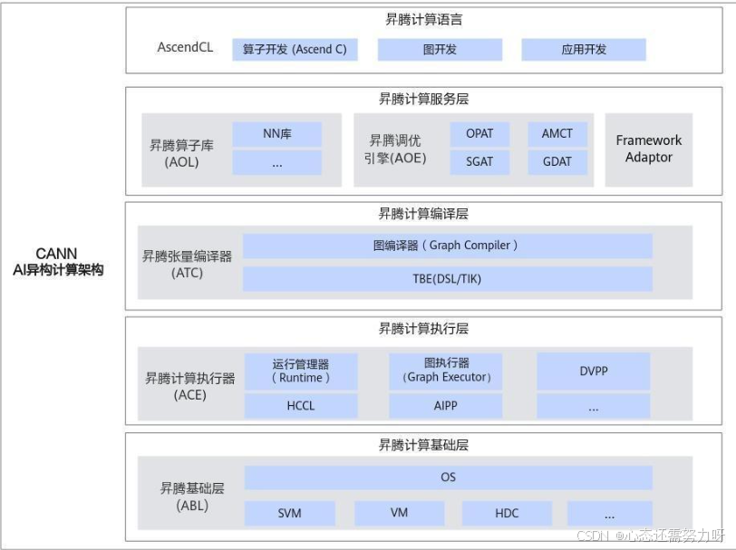 CANN 在昇腾软硬件栈中承担着"计算支撑层"的角色: