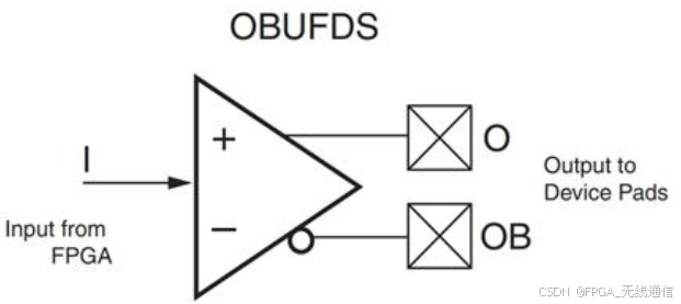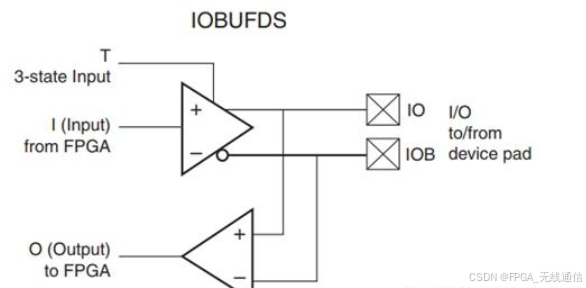 I的单端信号被转换为差分信号,驱动到IO(与I同相)和IOB(与I反相)。