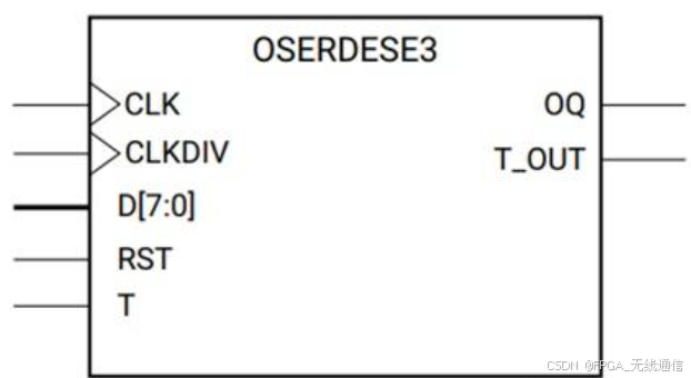 UltraScale 器件中的 OSERDESE3 是一个 4 或 8 位并串转换器,具有特定的时控功能,便于实现源同步应用和其它应用。如果需要其它串并转换因子,请使用 ODDRE1 原语或在内部逻辑中实现变速箱。