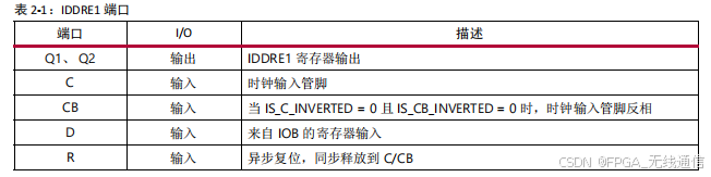 端口O:原语的输出端口,IO和IOB接收数据转换后从O端口输出到FPGA内部;