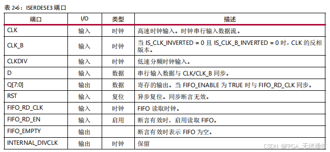 ISERDESE3 与先前使用的工具之间存在一些差异。 ISERDESE3 没有: