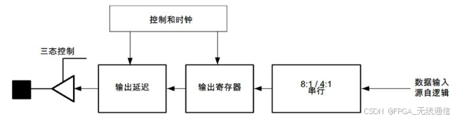 从器件逻辑进行转发,或是使用单沿SDR或双沿DDR时钟寄存在触发器或是OSERDES中,可以延迟的范围较广;