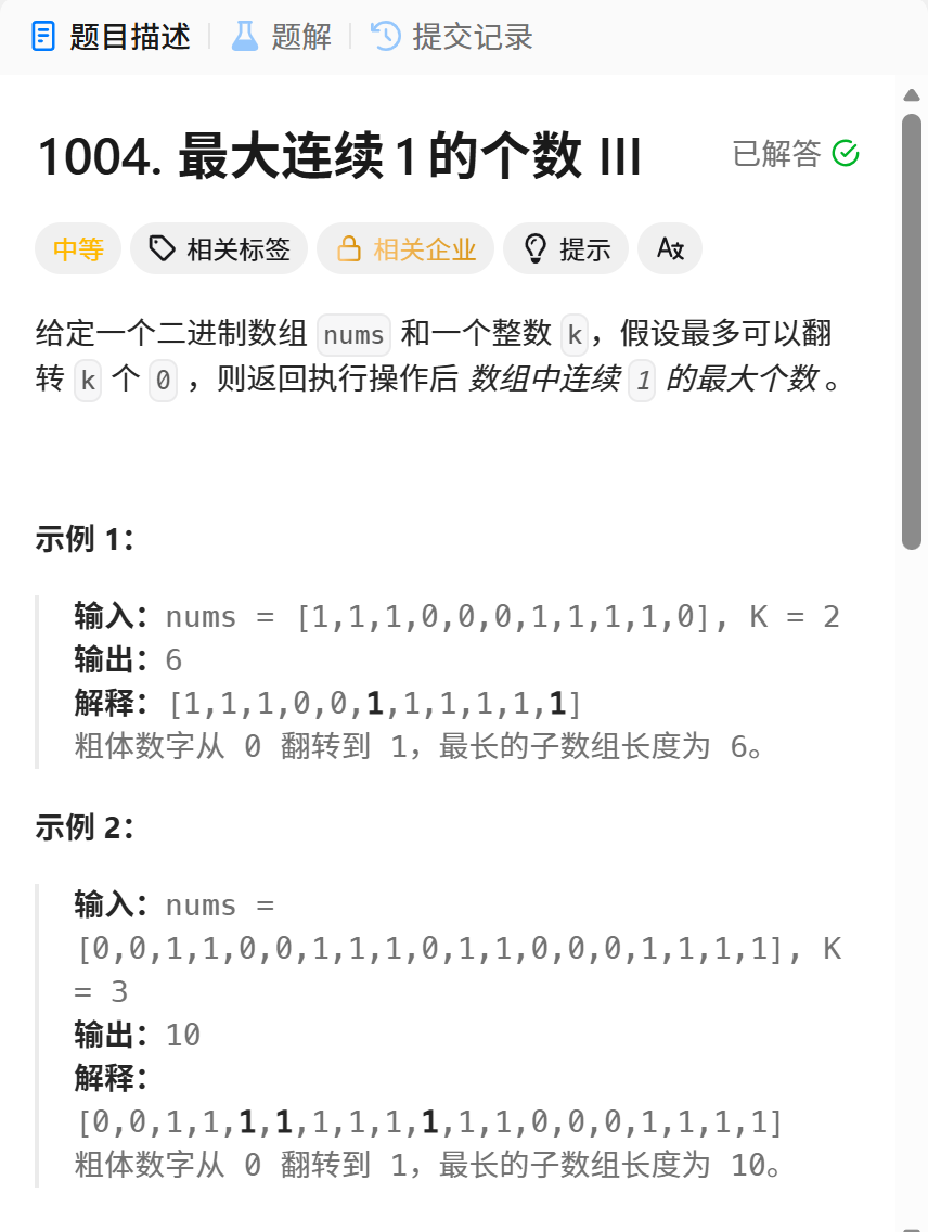 1004. 最大连续1的个数 III - 力扣(LeetCode)