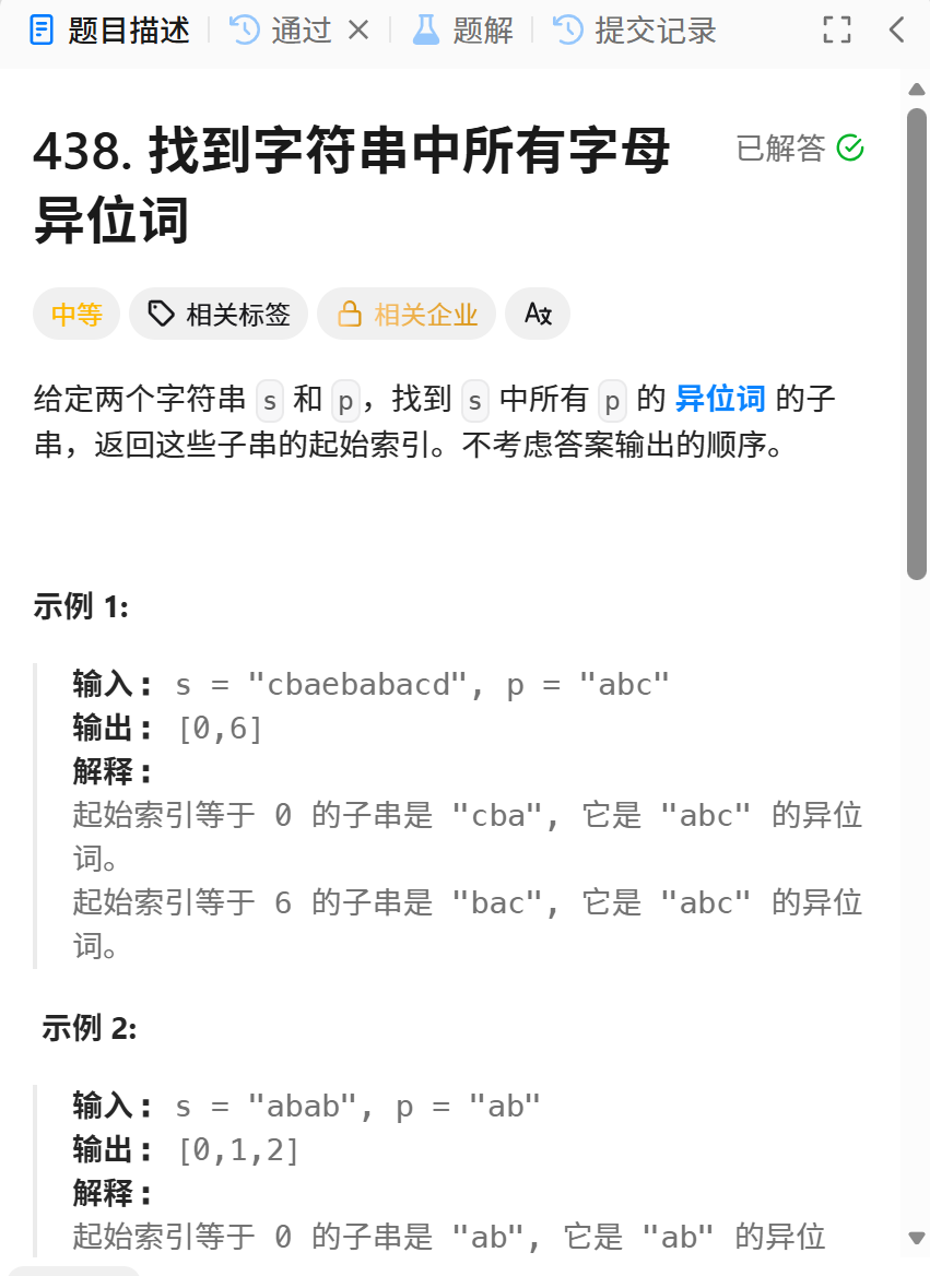 https://leetcode.cn/problems/find-all-anagrams-in-a-string/description/