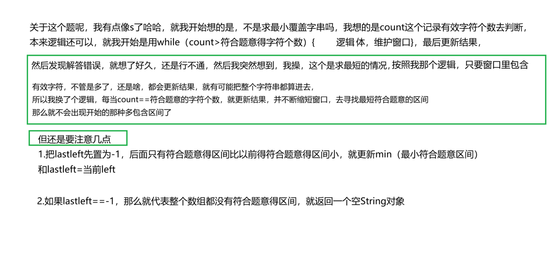 if(lastleft==-1){//lastleft还有初始值的-1,那就啥也没有最小覆盖子串这一说法,就是count始终达不到有效字符个数啊