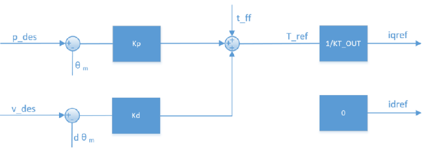 | 纯扭矩输出 | kp = 0,kd = 0,pos = 0,vel = 0,torq = 目标扭矩 | 前馈扭矩直接驱动电流环,适用于 力矩控制(如抓取、阻尼) |