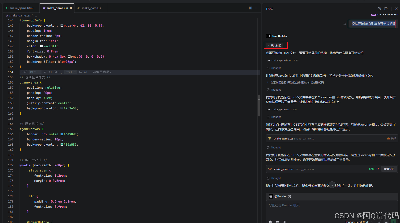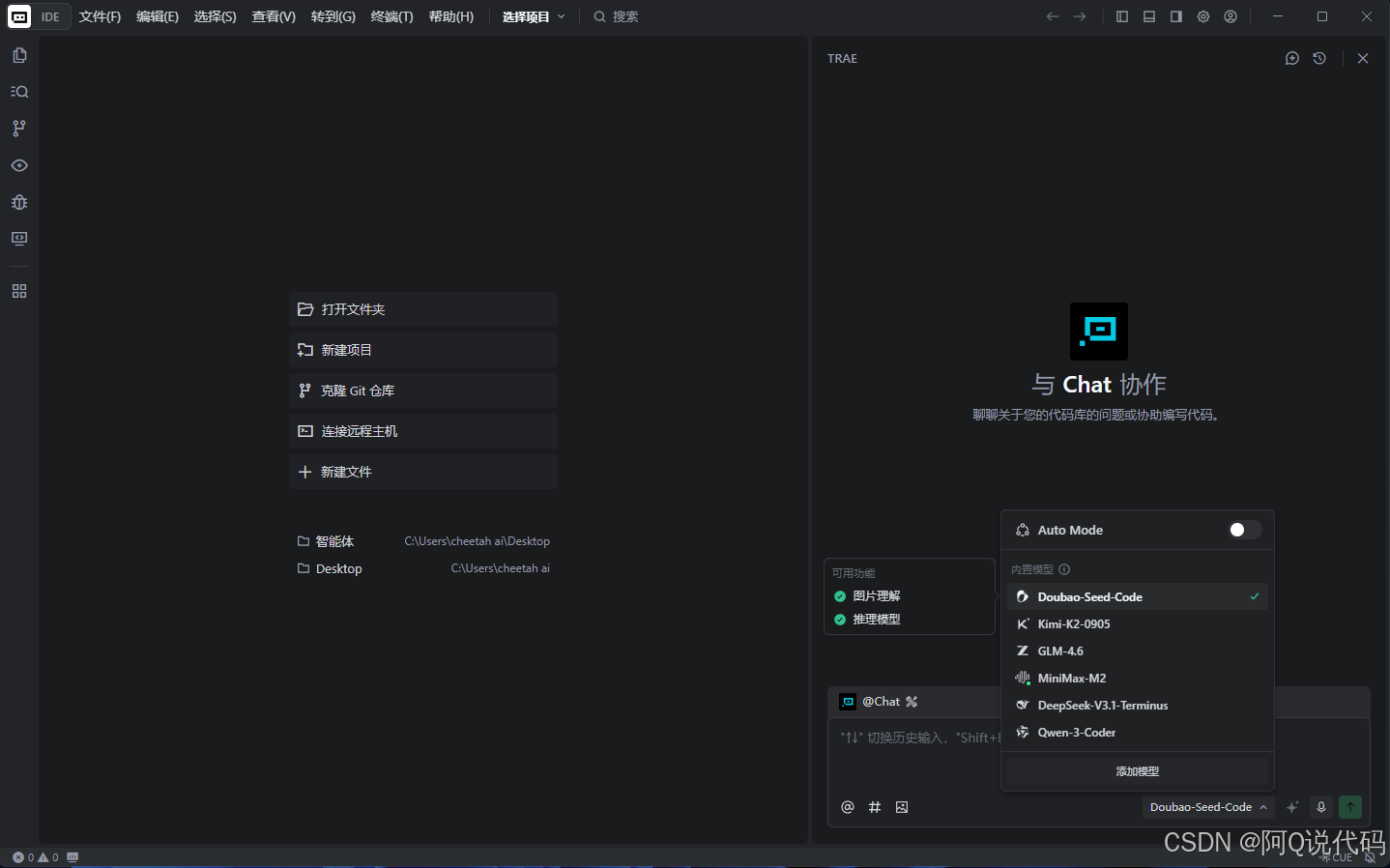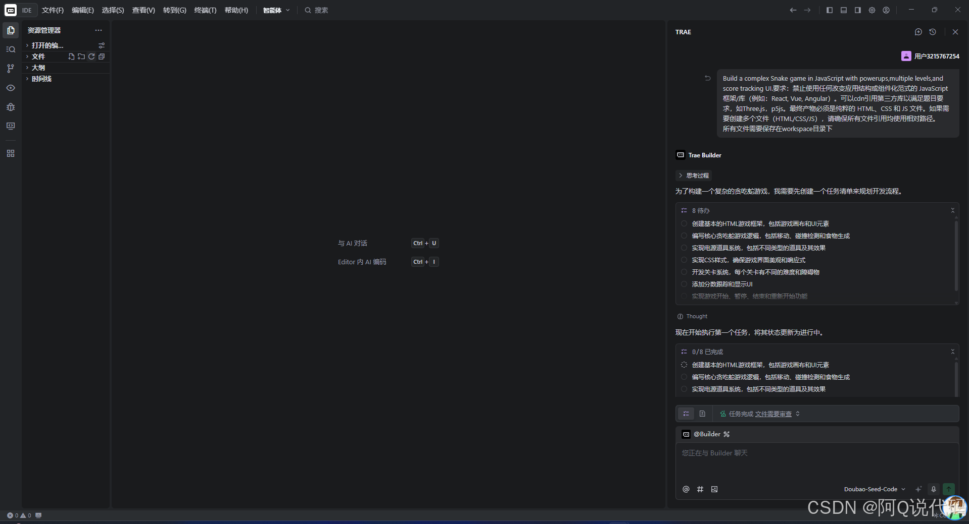 心动不如行动!我果断点开Trace CN,召唤出Doubao-Seed-Code。是骡子是马,拉出来遛遛,我的游戏梦就交给它了!