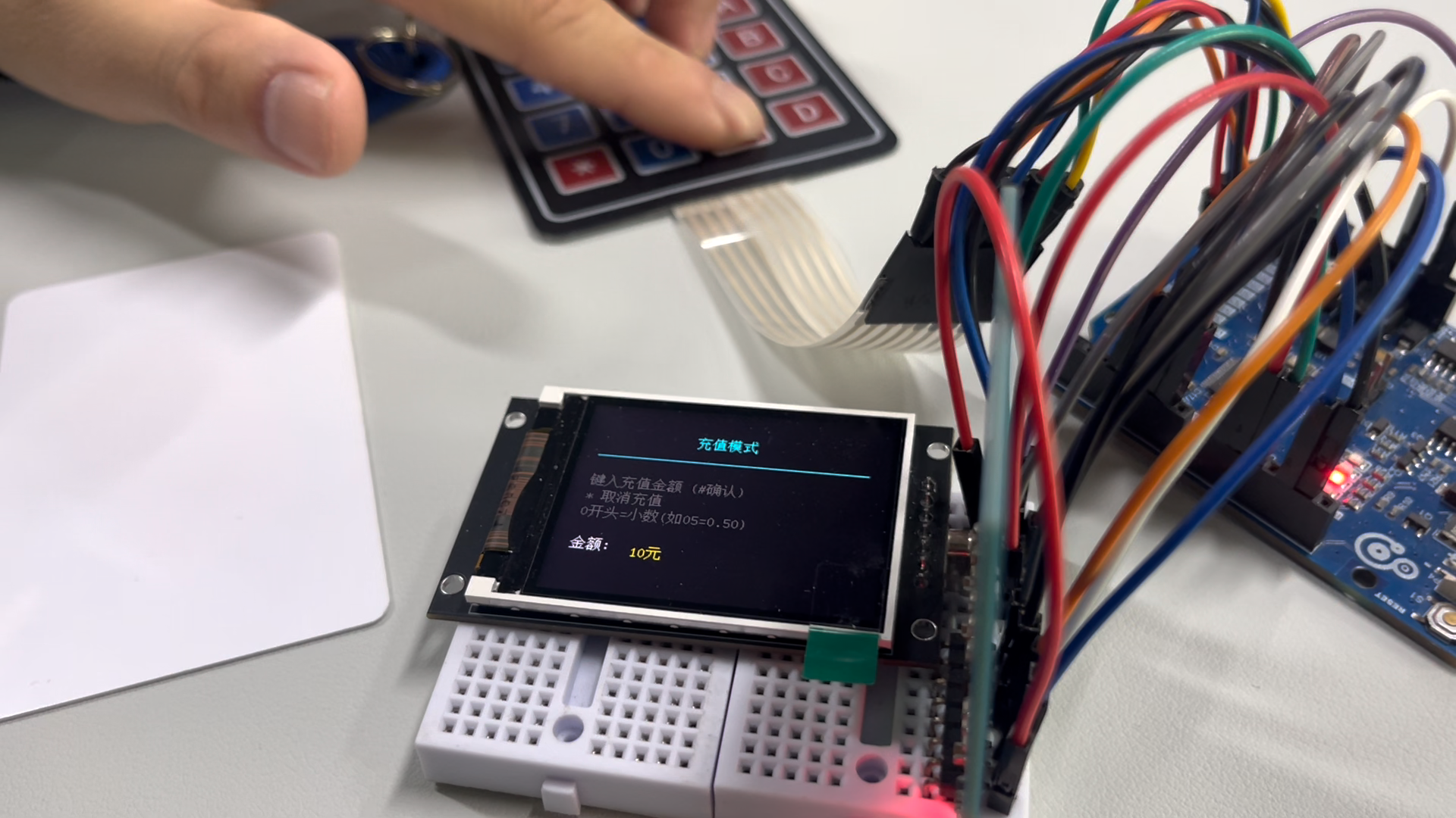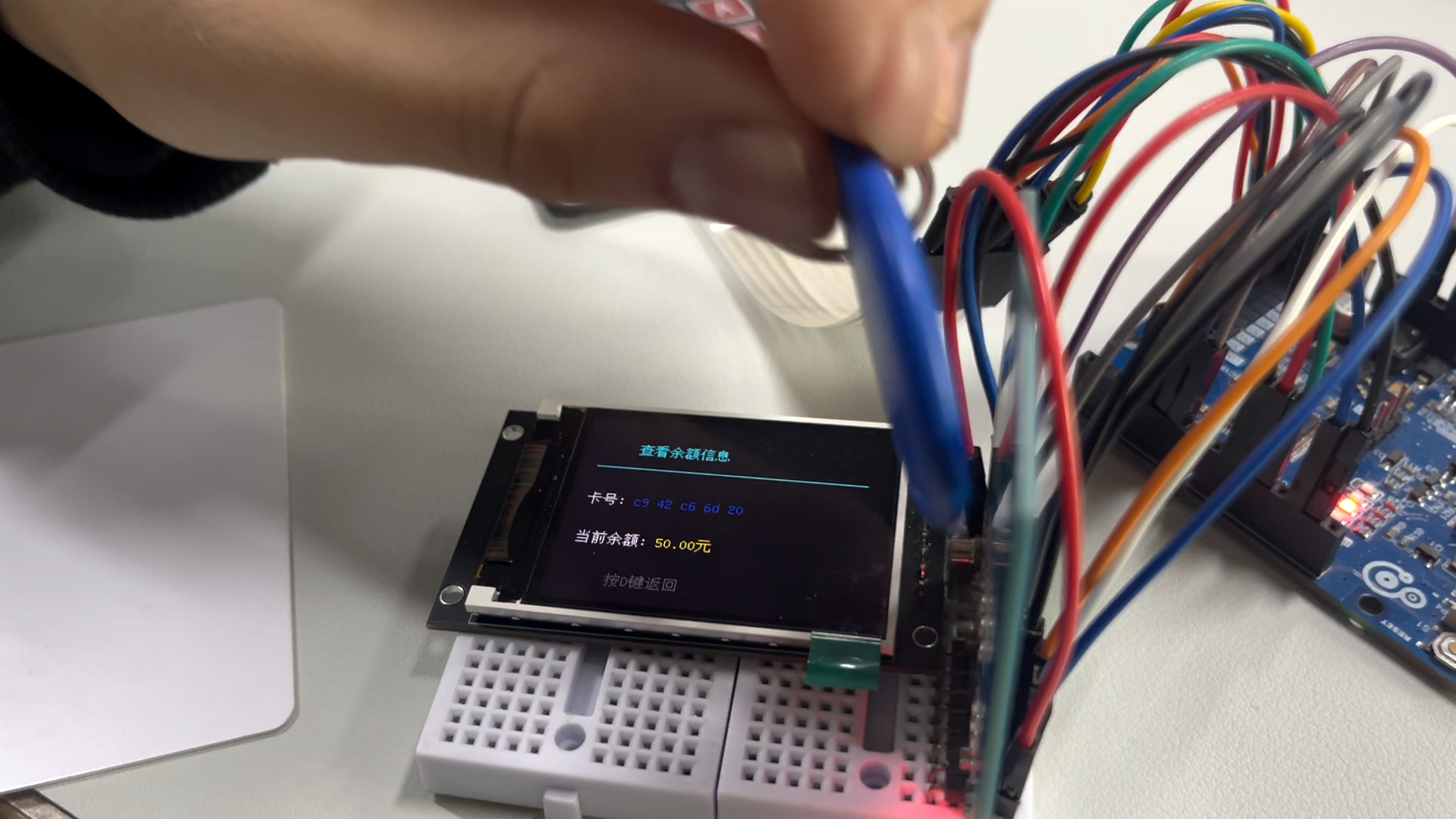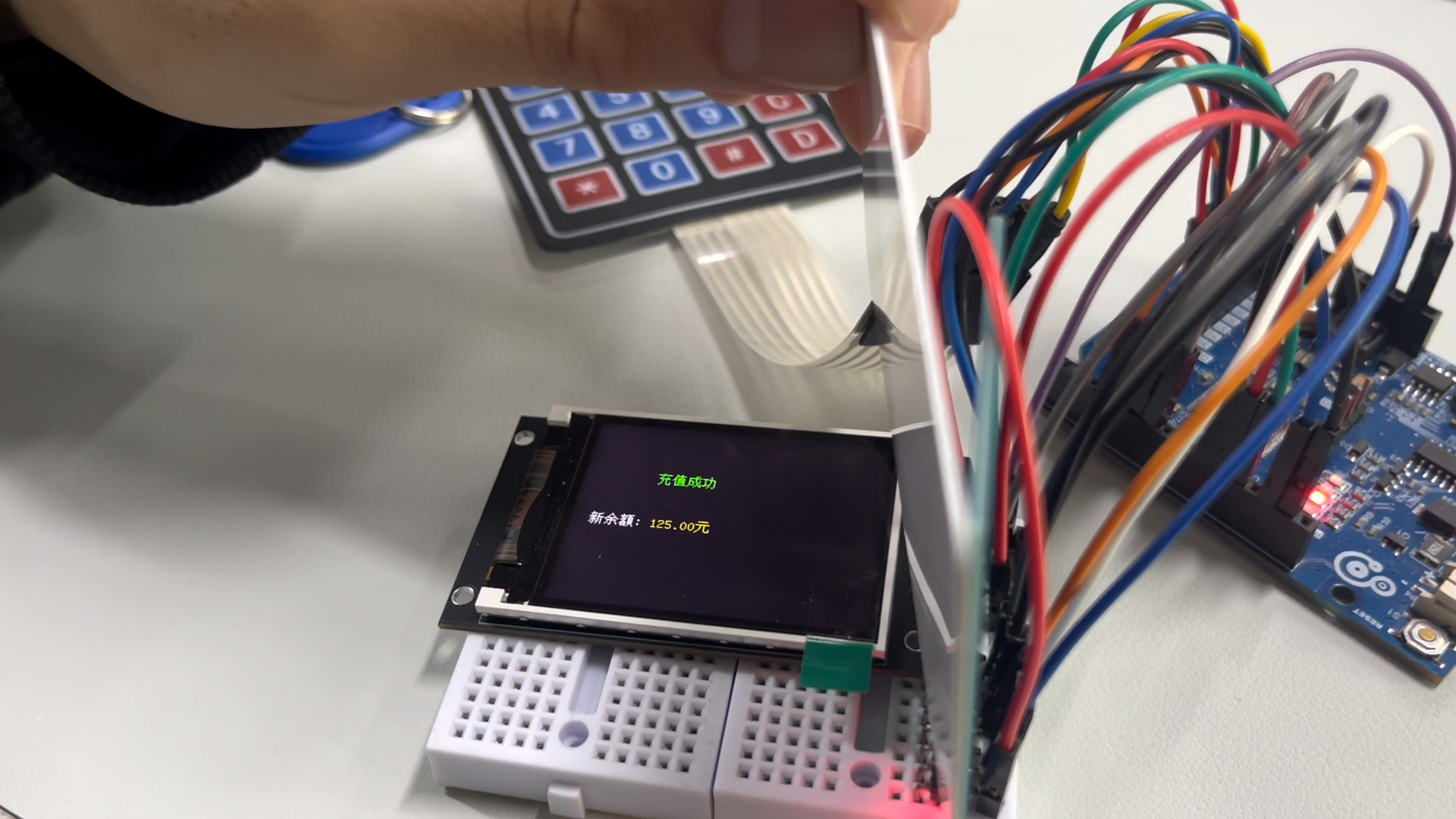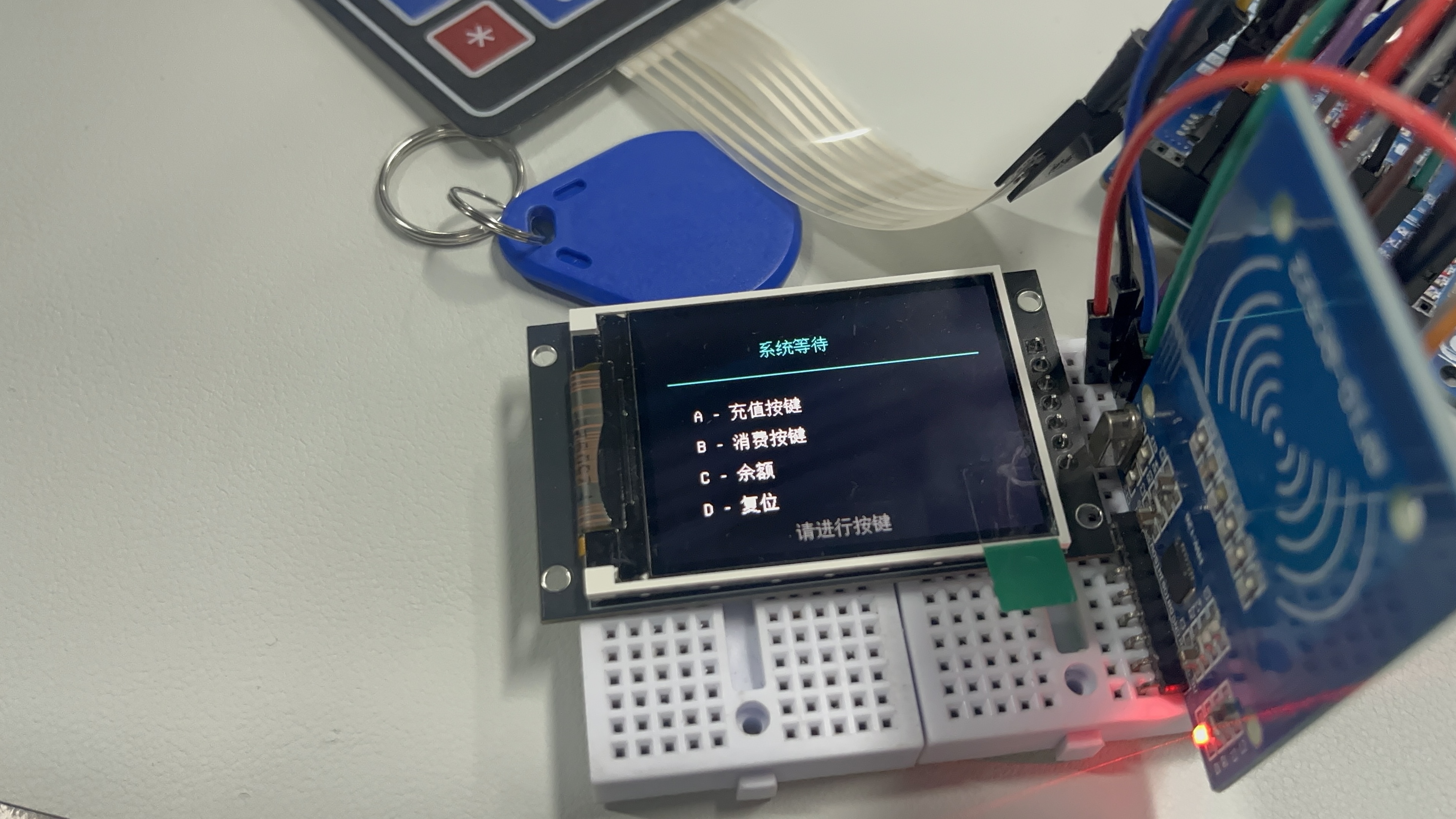 ④数据处理:STM32 接收 RC522 返回的数据(如余额),解析后通过屏幕显示,或修改数据(如充值)后通过 RC522 写回卡片