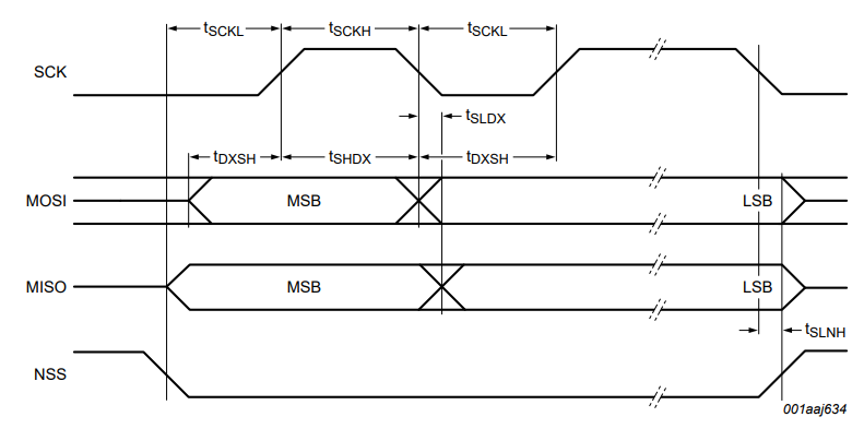 SCK:主机输出时钟,上升沿时 RC522 采样 MOSI 数据,下降沿时 RC522 输出 MISO 数据