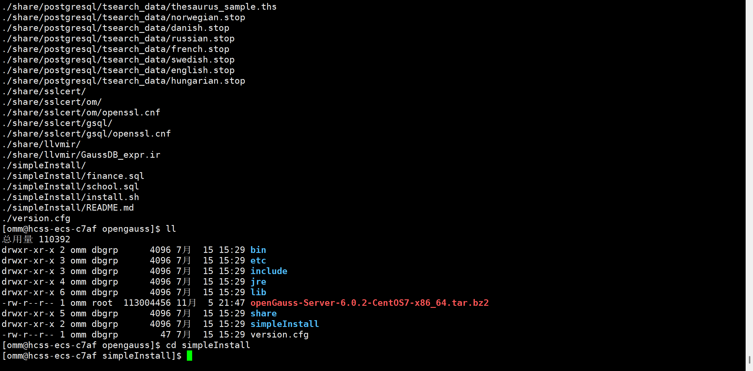 tar -jxvf openGauss-Server-6.0.2-CentOS7-x86_64.tar.bz2