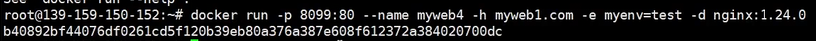 docker run -p 80:80 --name myweb1 -h myweb1.com -e myenv=test nginx:1.23.3