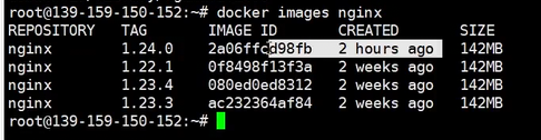 上图显示本地已成功存在 nginx:1.24.0 镜像,且该镜像的大小约为 142MB。