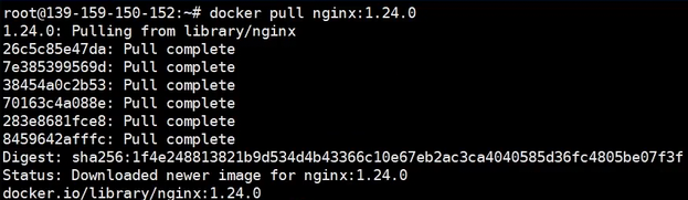 在 Docker 环境中,镜像的分发通过 Registry(注册中心)进行。获取镜像的标准命令是 docker pull。以下命令演示了如何从 Docker Hub 拉取特定版本(1.24.0)的 Nginx 镜像: