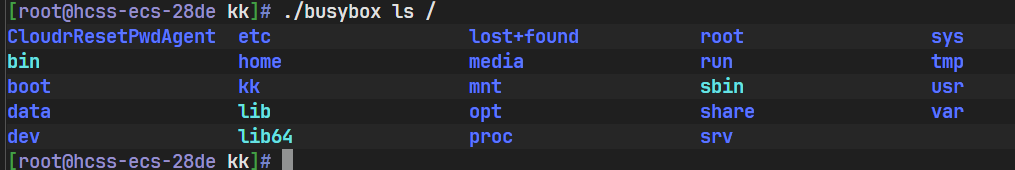BusyBox 的使用方式通常是 busybox [command] [arguments]。例如,使用 BusyBox 内置的 ls 命令查看根目录: