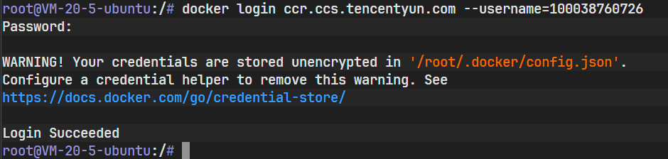 docker login ccr.ccs.tencentyun.com --username=100038760726
