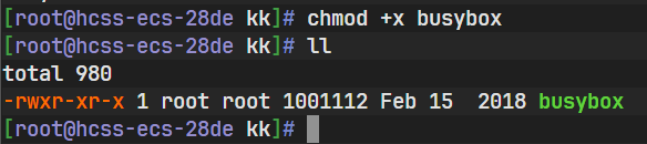 为了便于使用,通常将文件重命名为 busybox 并赋予其执行权限。Linux 系统中,只有拥有执行权限的文件才能作为程序运行。