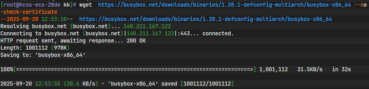wget https://busybox.net/downloads/binaries/1.28.1-defconfig-multiarch/busybox-x86_64 --no-check-certificate