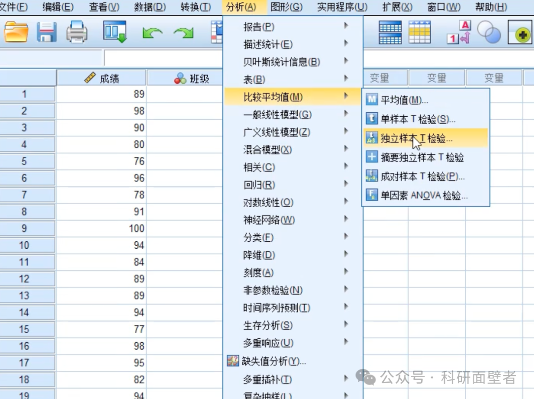 进行独立样本T检验