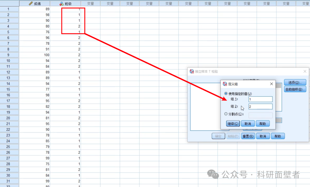 如果班级比较多,则可以选择如下方式,进行分割,令小于分割点的是一部分,大于分割点的是另一部分:
