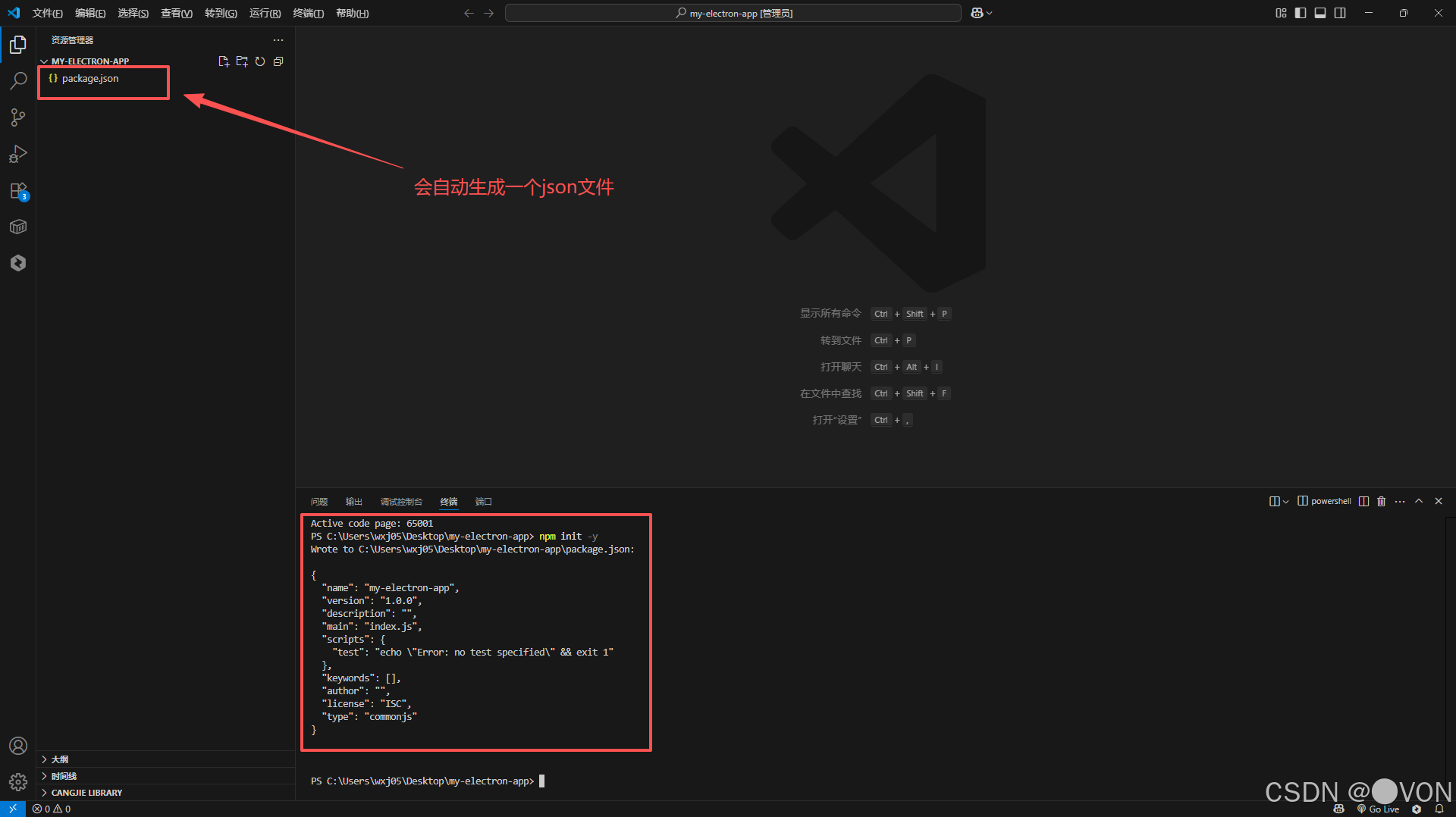 新建一个文件夹,比如 my-electron-app,并在其中初始化 npm 项目: