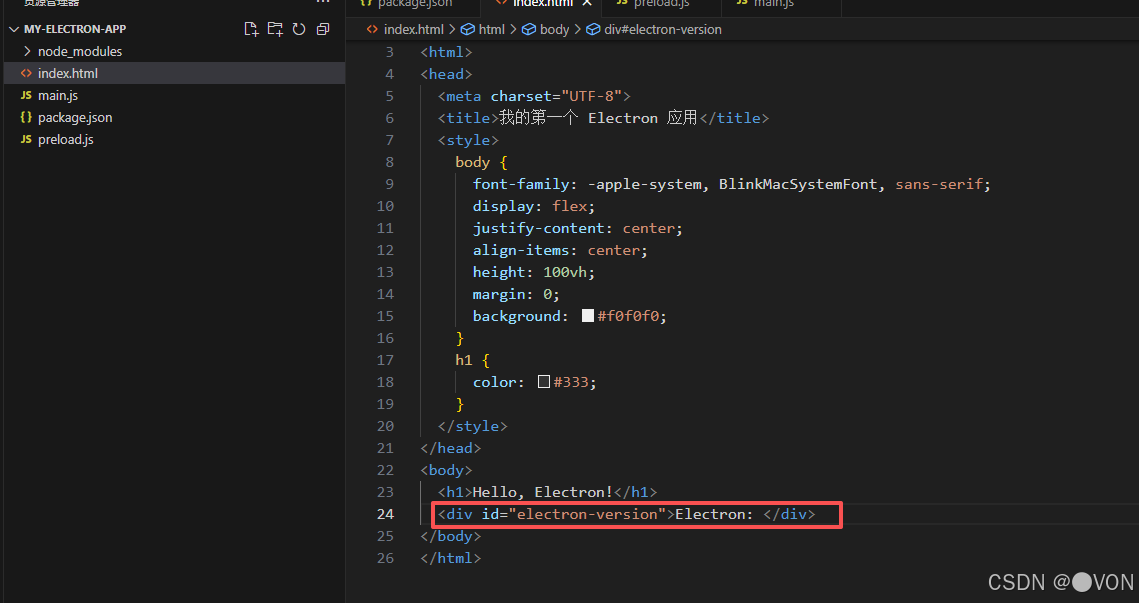 my-electron-app/ ├── main.js ├── preload.js ├── index.html └── package.json