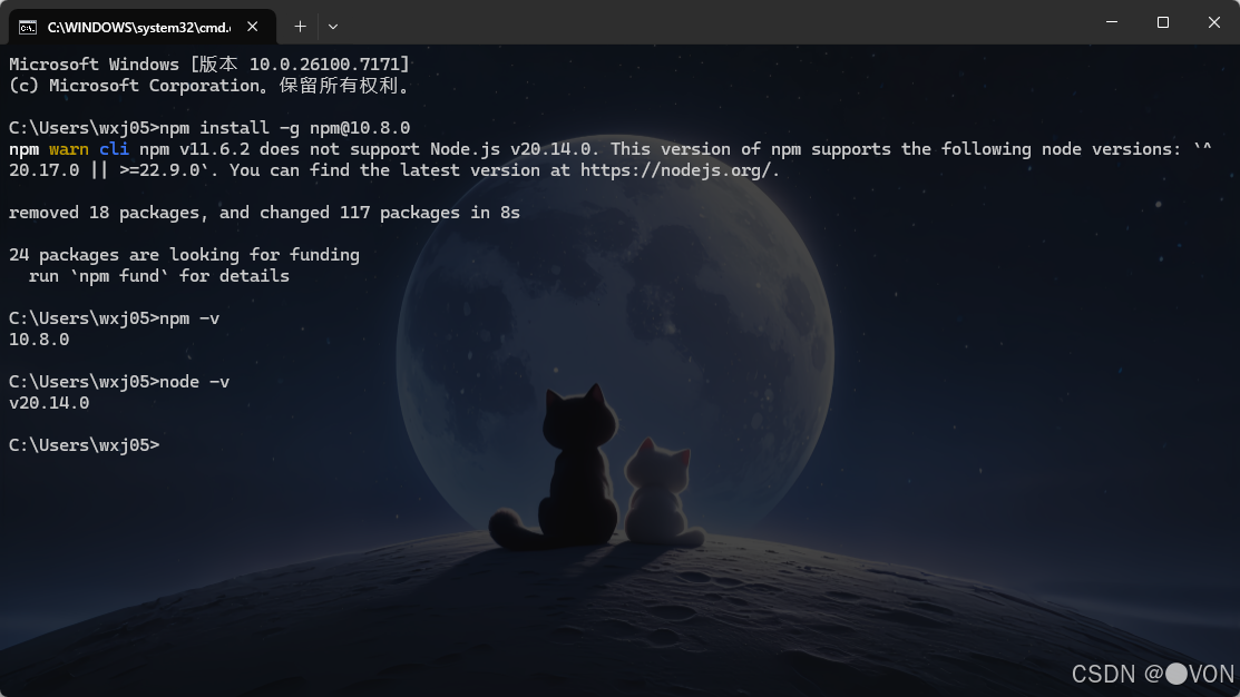 node版本和npm版本要兼容,这里需要更改一下npm版本
